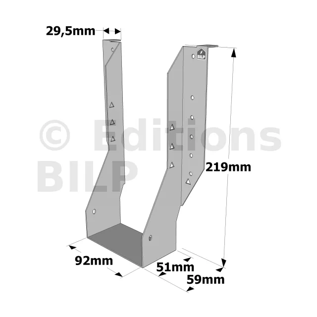 Les étriers à brides latérales IUSE garantissent une mise en œuvre facilitée grâce aux brides supérieures, tout en assurant un maintien de la membrure basse par forte adhérence. Le clouage s’effectue sur les brides latérales après un prépositionnement possible avec le "speed-prong".