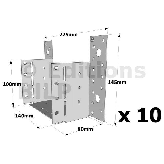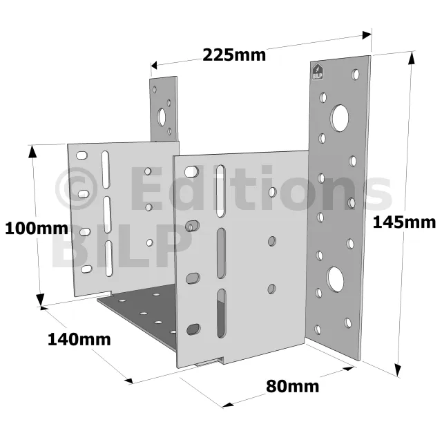 Les étriers pour croupe sont utilisés dans la fermette de section 38mm. Ils permettent la réalisation d‘une croupe en assemblant les demi-fermes d‘arêtier et d‘empannon. Les modèles différent suivant le type de mise en œuvre.