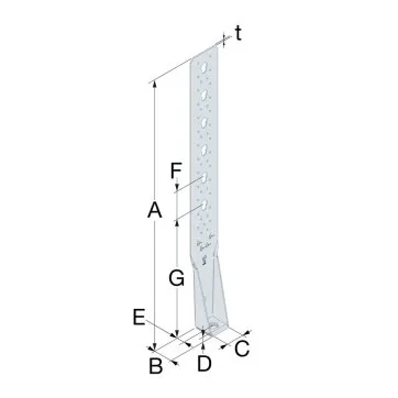 Ancrage pour montant d’ossature 63x558x60mm épaisseur 3mm - Réf. HTT22E