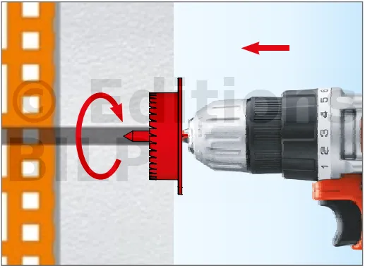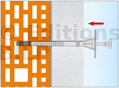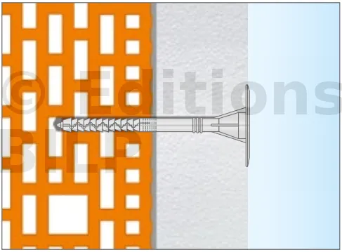 - Enfoncer le corps de la fixation de manière à ce que la rondelle de fixation soit orientée vers le matériau d’isolation thermique.
