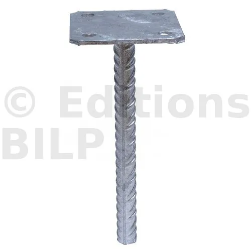 | Pied de poteau simple platine 100 mm (PPSP100) | Haute résistance 44,2 kN • Section 100 mm pour poteaux porteurs • Rond 20 mm : meilleure rigidité et tenue au vent |