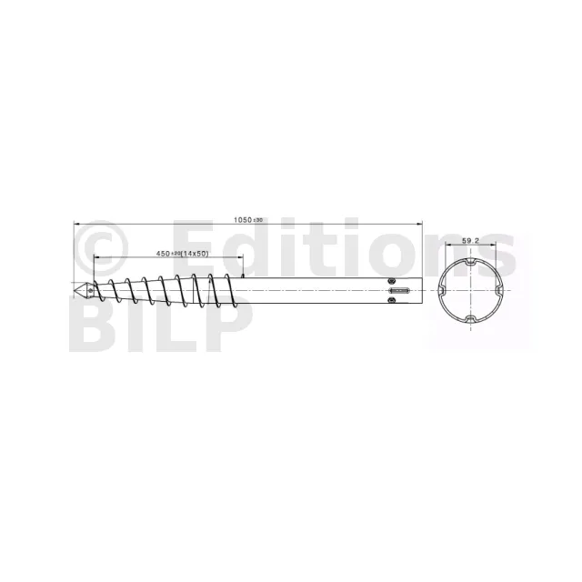- à l’une des extrémités une pointe “harpon” surmontée d’une partie en spirale pour pouvoir creuser le sol,