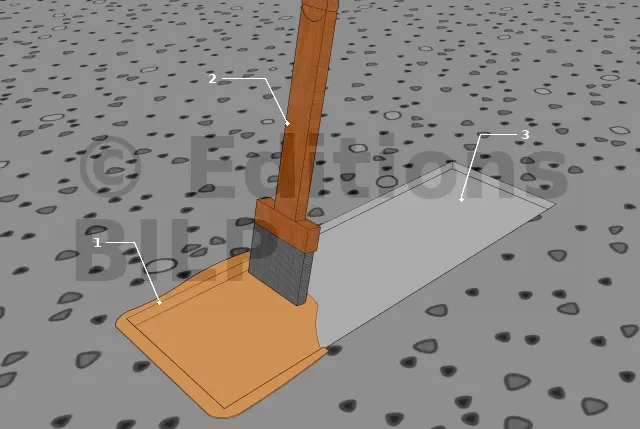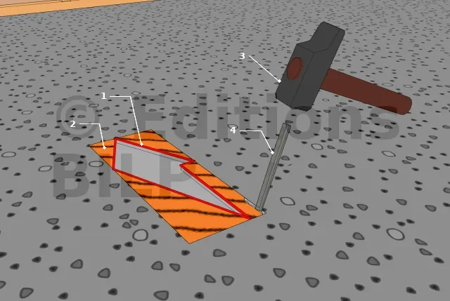 - 3 et 4 : maillet et burin qui peuvent être remplacés par une disqueuse