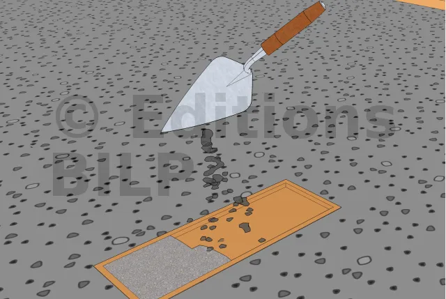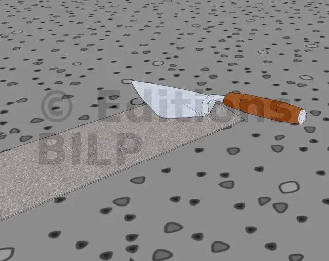 A l’aide de la truelle, enlever l’excès du mortier pour que celui-ci soit vraiment plan avec la surface de la dalle en béton.